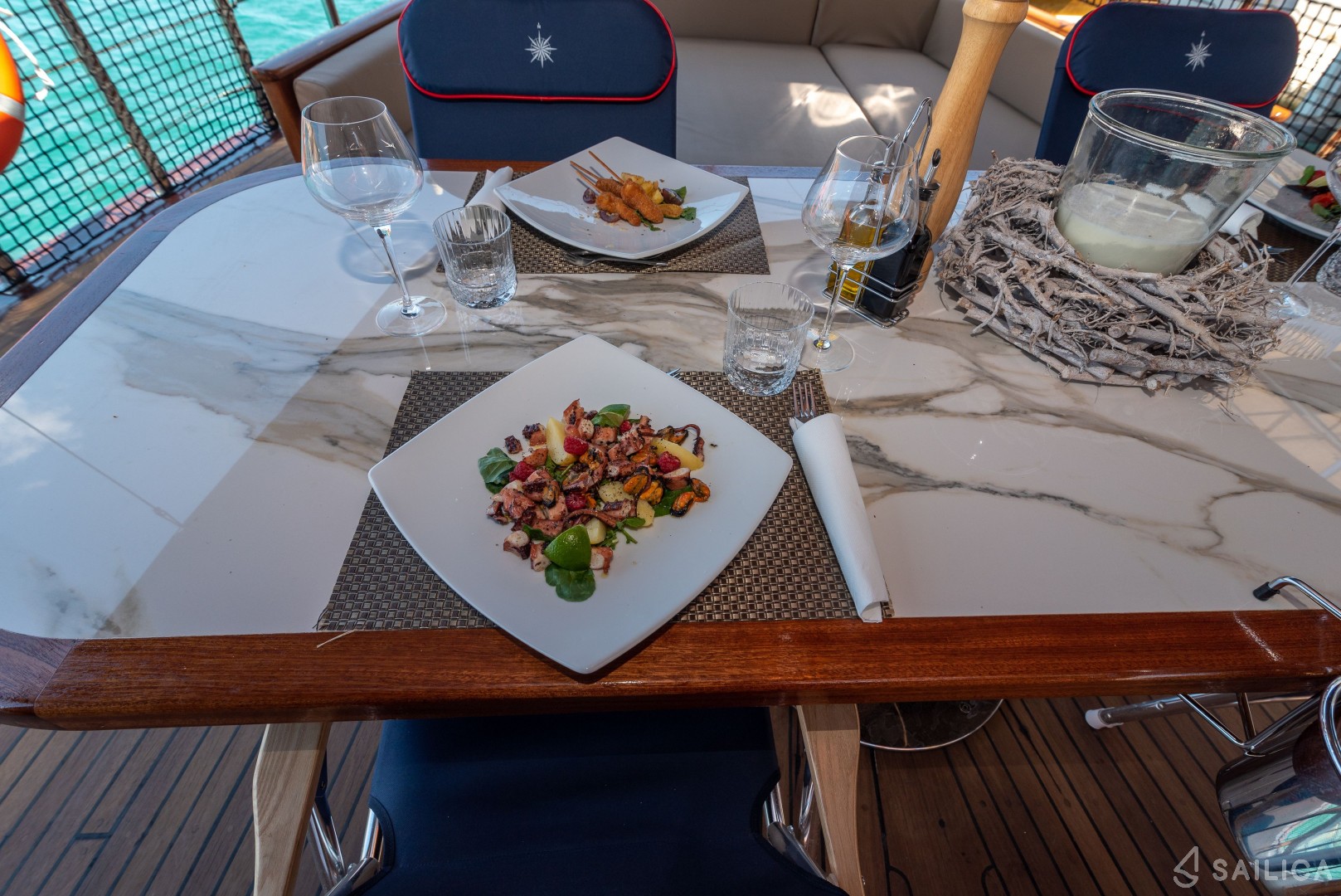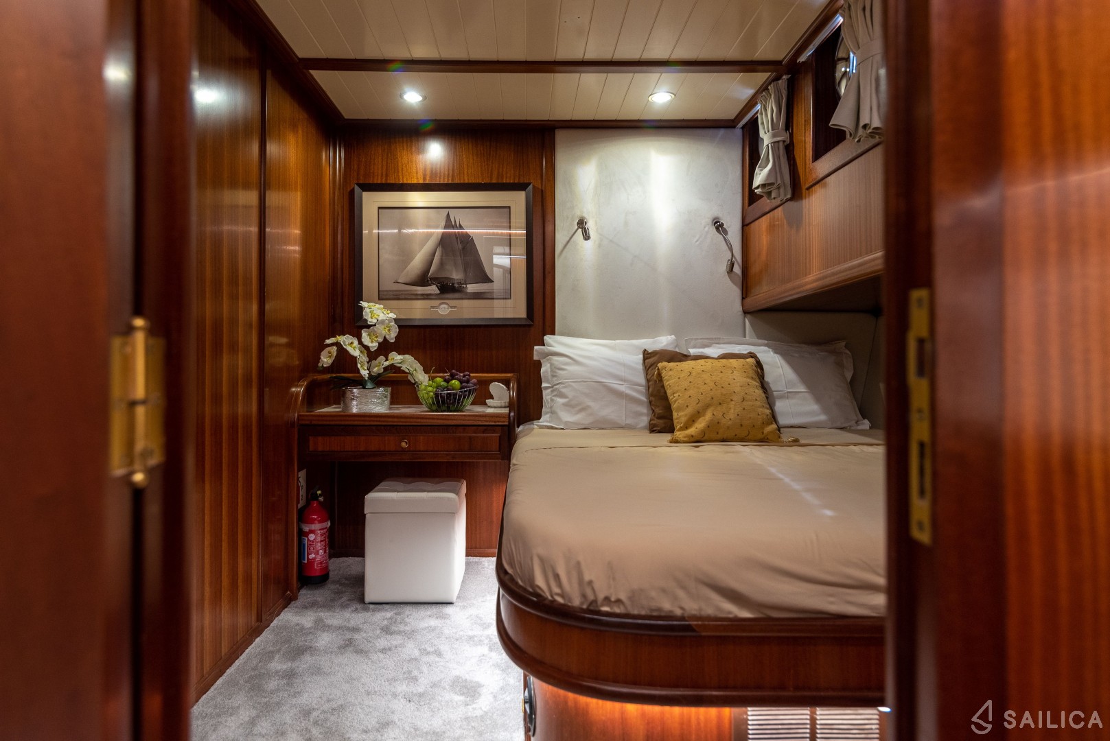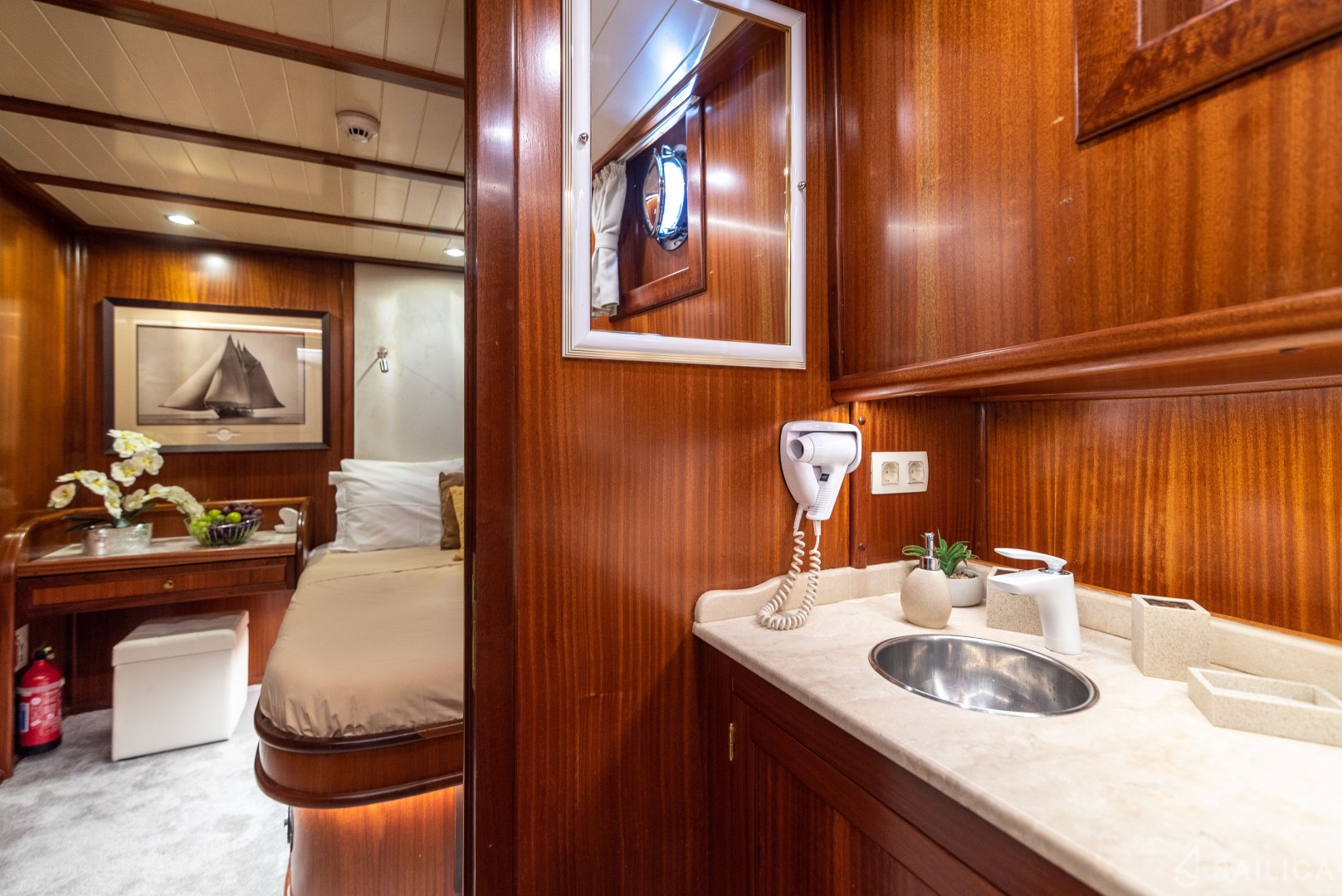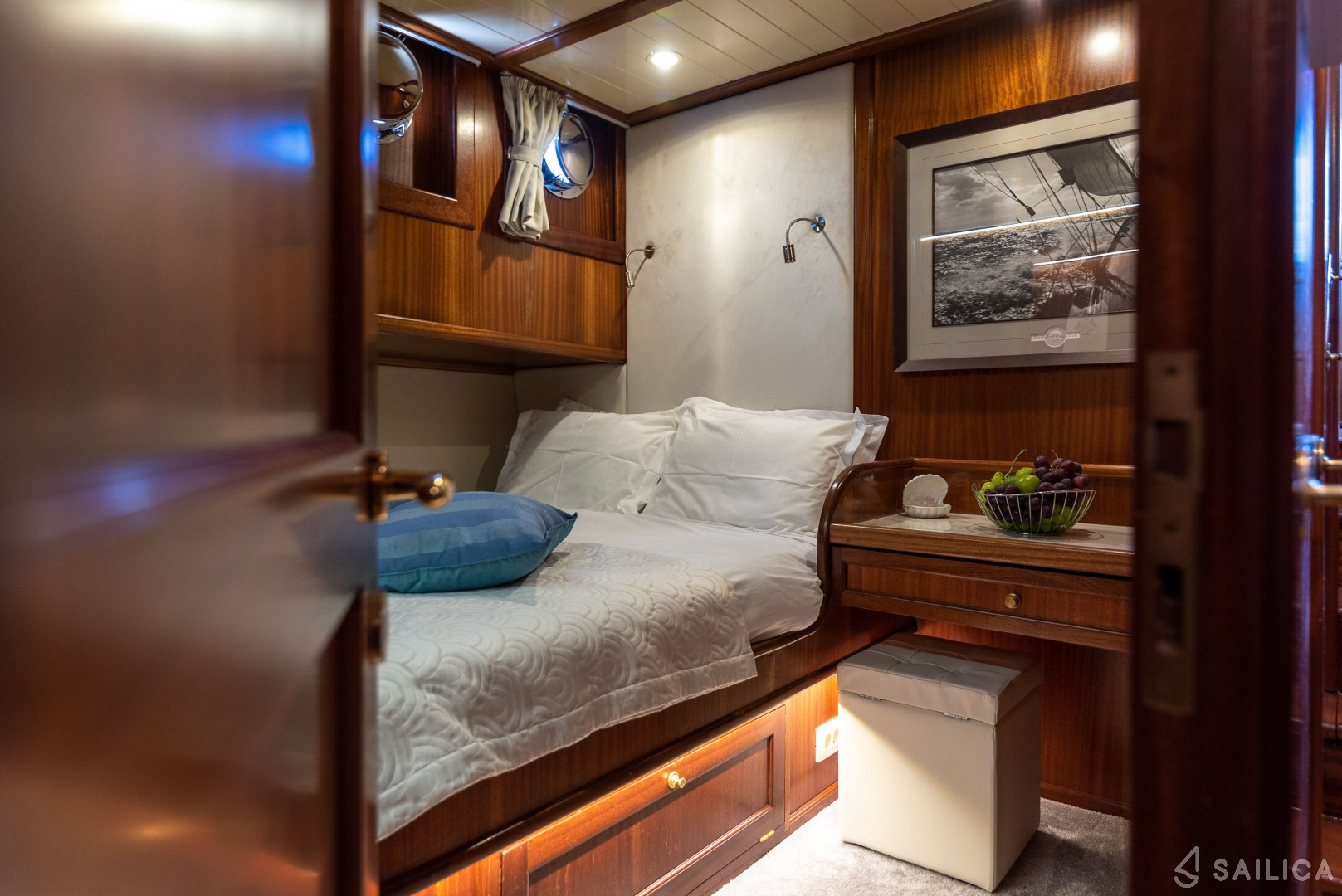 This yacht can comfortably accommodate up to 8 guests, it contains 4 cabins, and 4 WC (toilet).