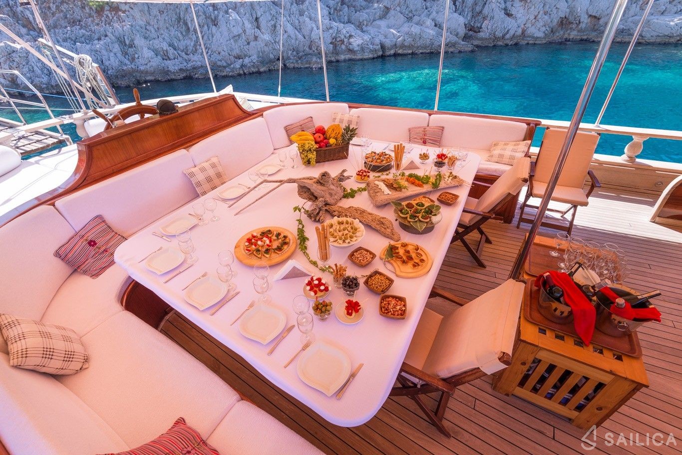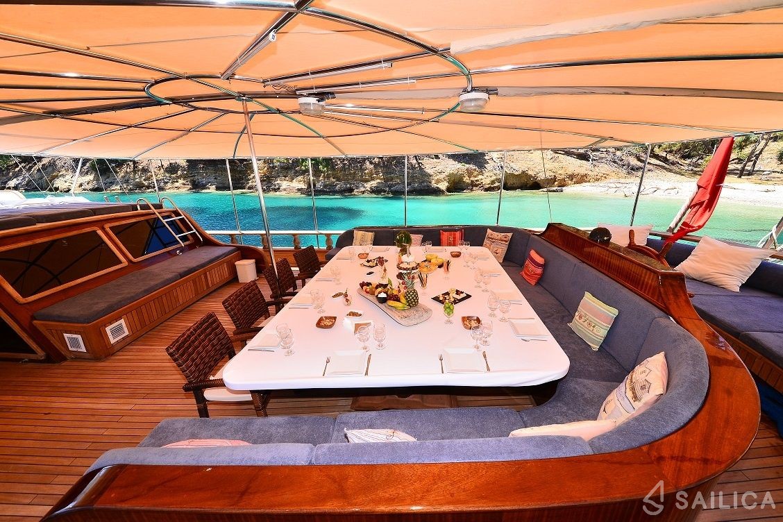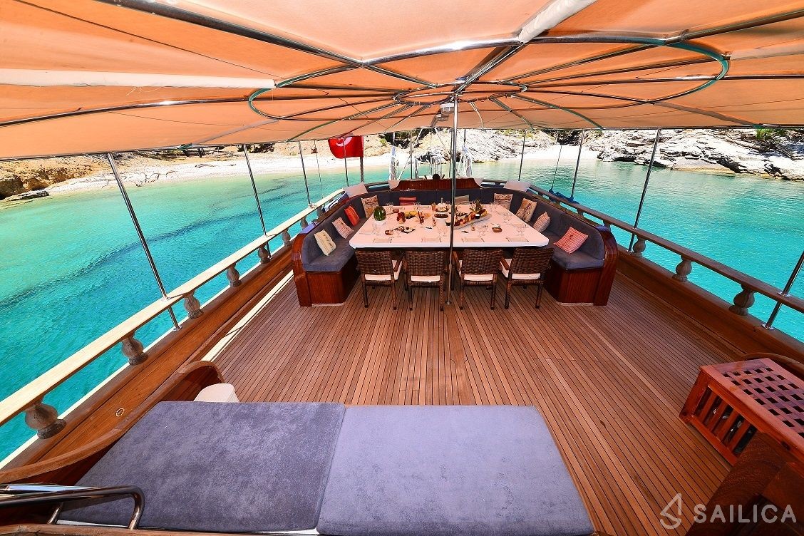 Gulet Deniz Felix Balina is a beautiful gulet built in 2004. This gulet is operated by the Ramses Yachting charter company and docked at Marina Fethiye.