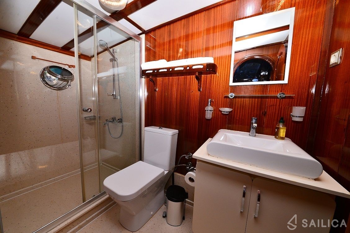 This yacht can comfortably accommodate up to 16 guests, it contains 8 cabins, and 8 WC (toilet).