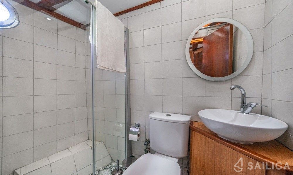 This yacht can comfortably accommodate up to 8 guests, it contains 4 cabins, and 4 WC (toilet).