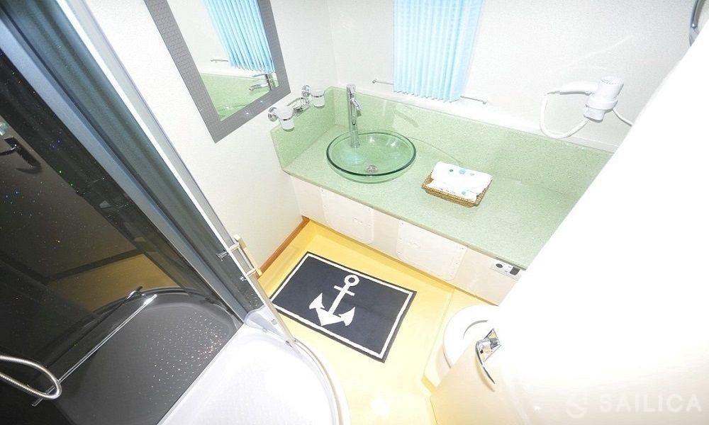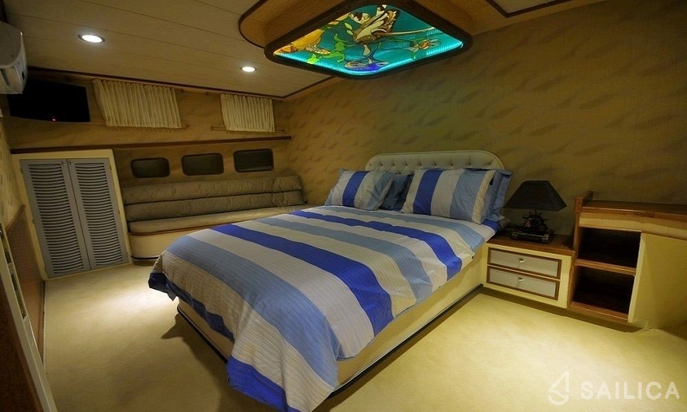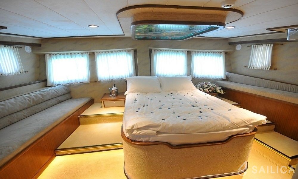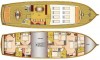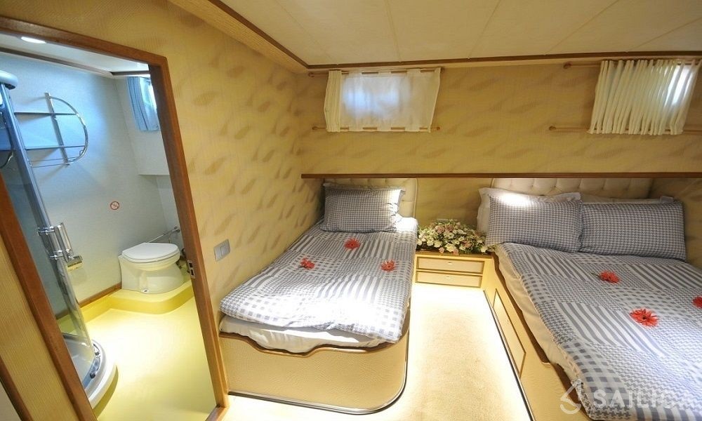 This yacht can comfortably accommodate up to 8 guests, it contains 4 cabins, and 4 WC (toilet).