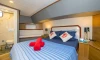 This yacht can comfortably accommodate up to 12 guests, it contains 6 cabins, and 6 WC (toilet).