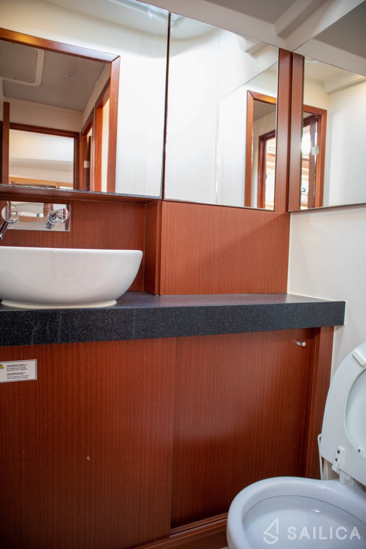 This yacht can comfortably accommodate up to 8 guests, it contains 4 cabins, and 2 WC (toilet).