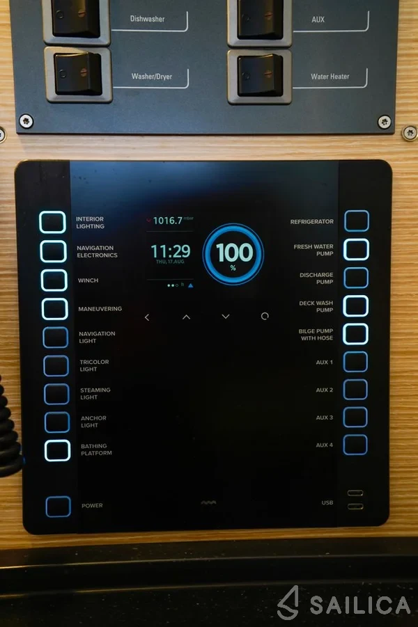 For your convenience, this boat features an Anemometer, Windlass, Deck Shower, GPS Chartplotter, First aid kit.