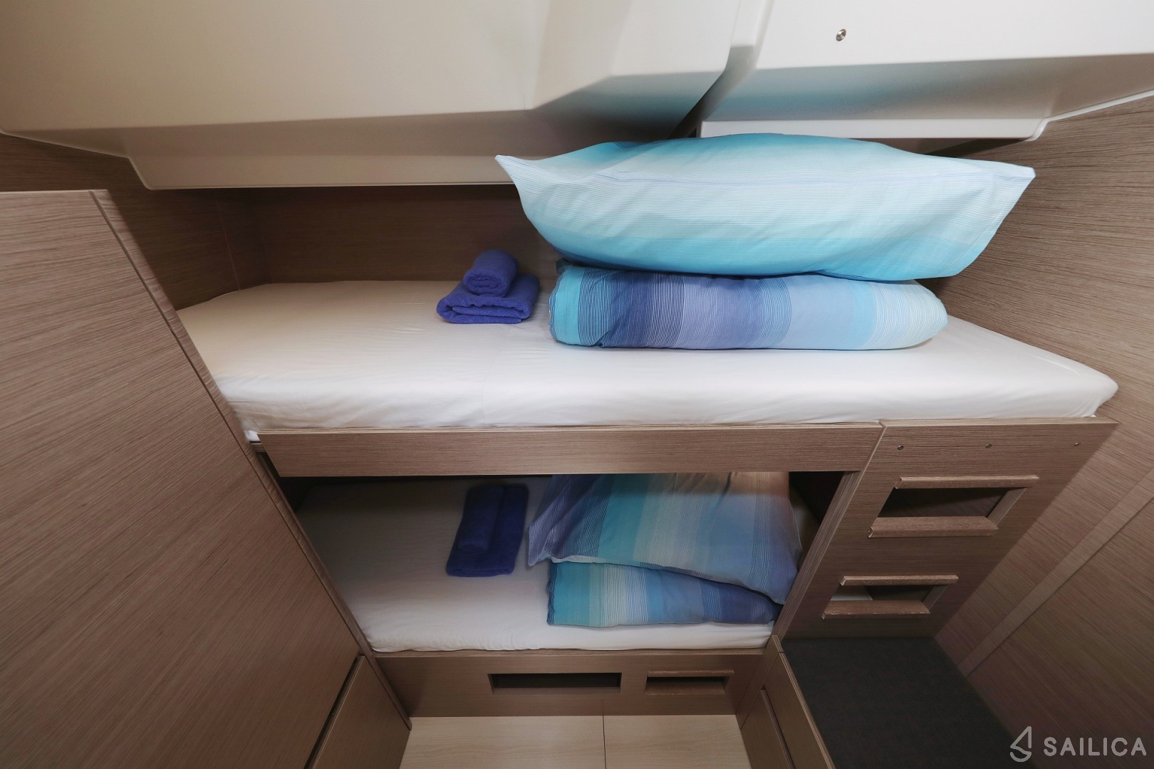 This yacht can comfortably accommodate up to 12 guests, it contains 6 cabins, and 3 WC (toilet).