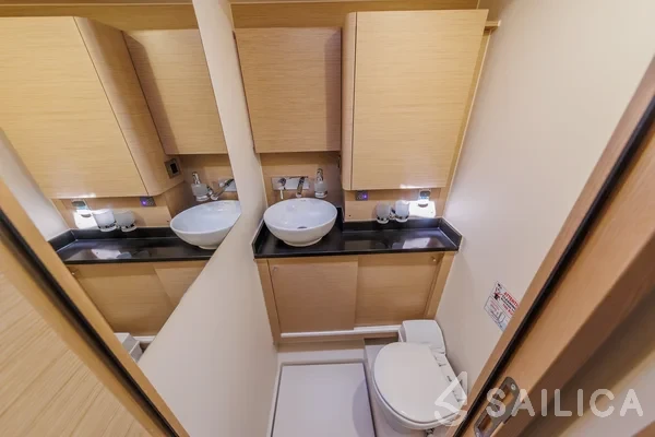This yacht can comfortably accommodate up to 10 guests, it contains 5 cabins, and 4 WC (toilet).