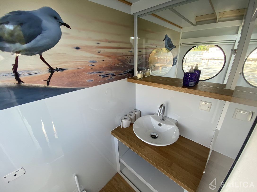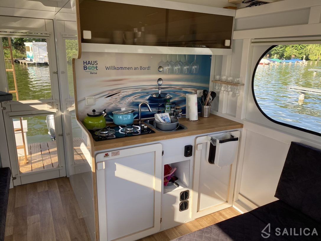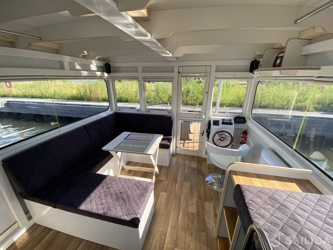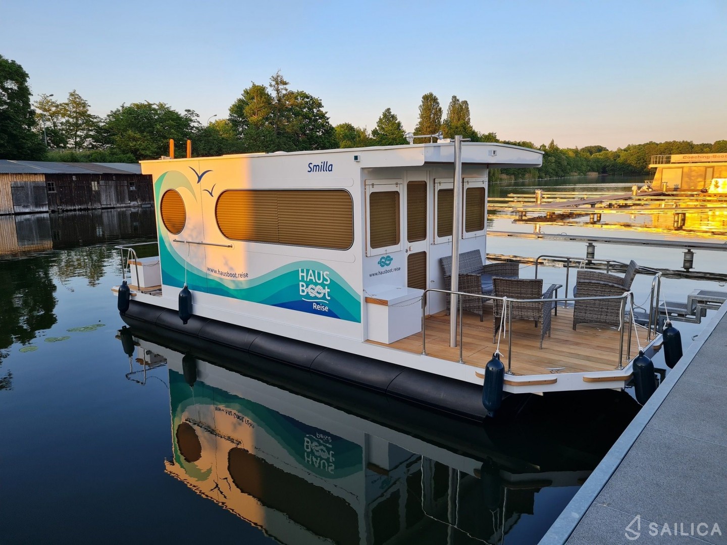 Houseboat Kompakt Smilla is a beautiful houseboat built in 2021. This houseboat is operated by the Krüger&Bethke charter company and docked at Neuruppin Hafen Marina.