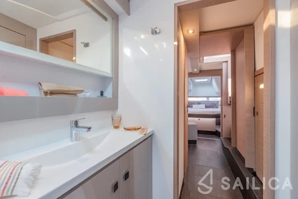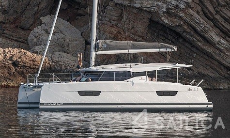 Isla 40 Memories Catamaran was produced in 2022, and is operated by the Blue Memories charter company. This luxurious vessel can comfortably accommodate up to 10 people, it contains 5 cabins and 4 WC. For your convenience, Isla 40 Memories is equipped with an Full batten main sail, Furling Genoa, Holding tank, Kitchen equipment , Self - tacking jib and much more.