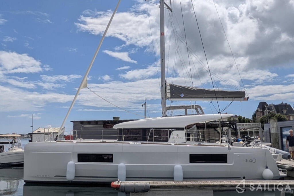 Lagoon 40 LAST ONE Catamaran was produced in 2025, and is operated by the Sailoe Corsica charter company. This luxurious vessel can comfortably accommodate up to 12 people, it contains 6 cabins and 2 WC. For your convenience, Lagoon 40 LAST ONE is equipped with an Lazy bag, Hot Water , Shore Connection 220 V , Stove, Radio - CD player and much more.