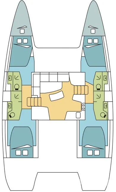 Lagoon 42 BIMINI Catamaran was produced in 2018, and is operated by the Dream Yacht Charter charter company. This luxurious vessel can comfortably accommodate up to 12 people, it contains 6 cabins and 4 WC. For your convenience, Lagoon 42 BIMINI is equipped with an Lazy bag, Anemometer, Windlass, Stove, Deck Shower and much more.