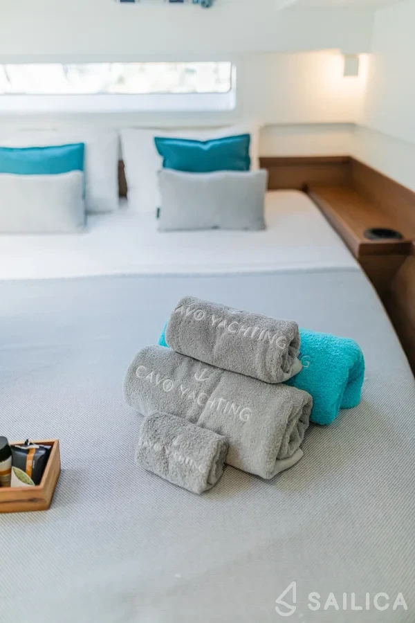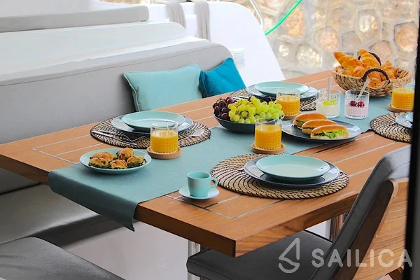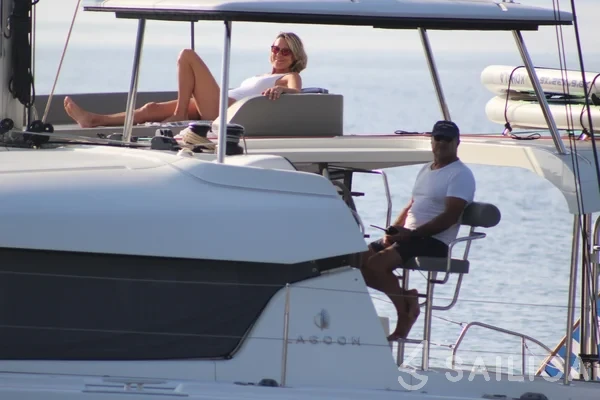 Lagoon 42 JOY Catamaran was produced in 2018, and is operated by the Cavo Yachting charter company. This luxurious vessel can comfortably accommodate up to 10 people, it contains 5 cabins and 5 WC. For your convenience, Lagoon 42 JOY is equipped with an GPS Chartplotter, Gangway, Kayak, Coffee machine, Electric WC and much more.