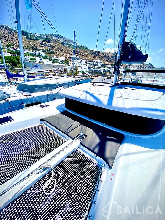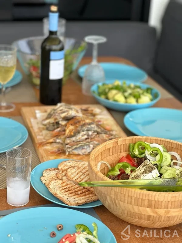 Catamaran Lagoon 42 The Key of Joy is docked in the beautiful Tourlos Marina, and it is important to know that all rented vessels must be returned to the same location from which they were rented.