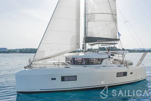 Lagoon 42 Pulsar Catamaran was produced in 2022, and is operated by the Istion Yachting charter company. This luxurious vessel can comfortably accommodate up to 10 people, it contains 5 cabins and 4 WC. For your convenience, Lagoon 42 Pulsar is equipped with an Hydraulic gangway, GPS Chartplotter, Gangway, Electric WC, Dinghy with outboard engine and much more.