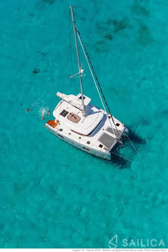 Lagoon 42 Solaris Catamaran is your perfect choice of a vessel for hosting, fishing, swimming, snorkeling or whatever else your adventure has in store for you!