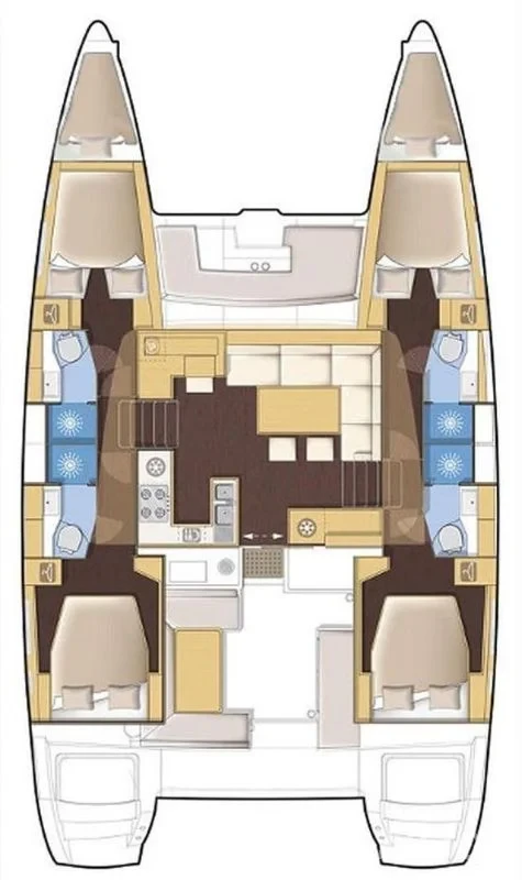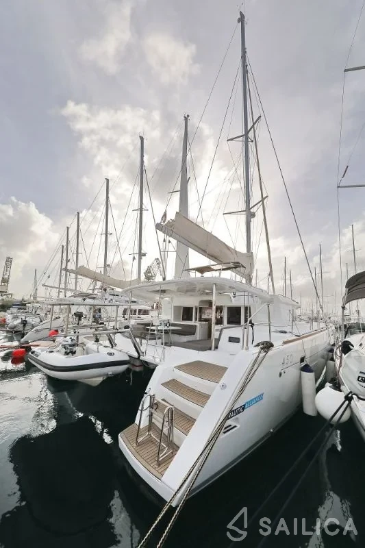 Lagoon 450 Flybridge Lydia Catamaran was produced in 2015, and is operated by the Nautic Alliance charter company. This luxurious vessel can comfortably accommodate up to 8 people, it contains 4 cabins and 4 WC. For your convenience, Lagoon 450 Flybridge Lydia is equipped with an Lazy bag, Tridata, Hot Water , Teak Cockpit, Windex and much more.