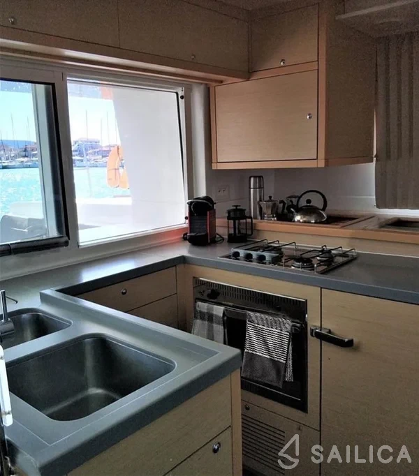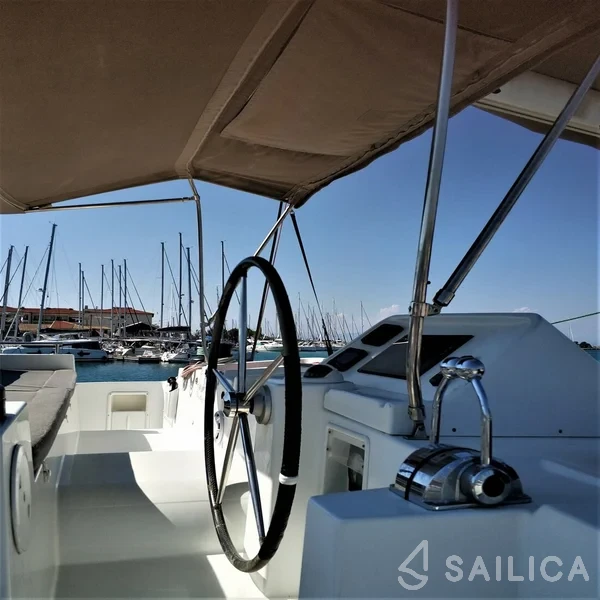 Lagoon 450 Flybridge AZRAQ (refit 2023) Catamaran was produced in 2015, and is operated by the Anassa Sailing charter company. This luxurious vessel can comfortably accommodate up to 8 people, it contains 4 cabins and 4 WC. For your convenience, Lagoon 450 Flybridge AZRAQ (refit 2023) is equipped with an Wind instrument , Windlass, GPS Chartplotter, Gangway, Coffee machine and much more.