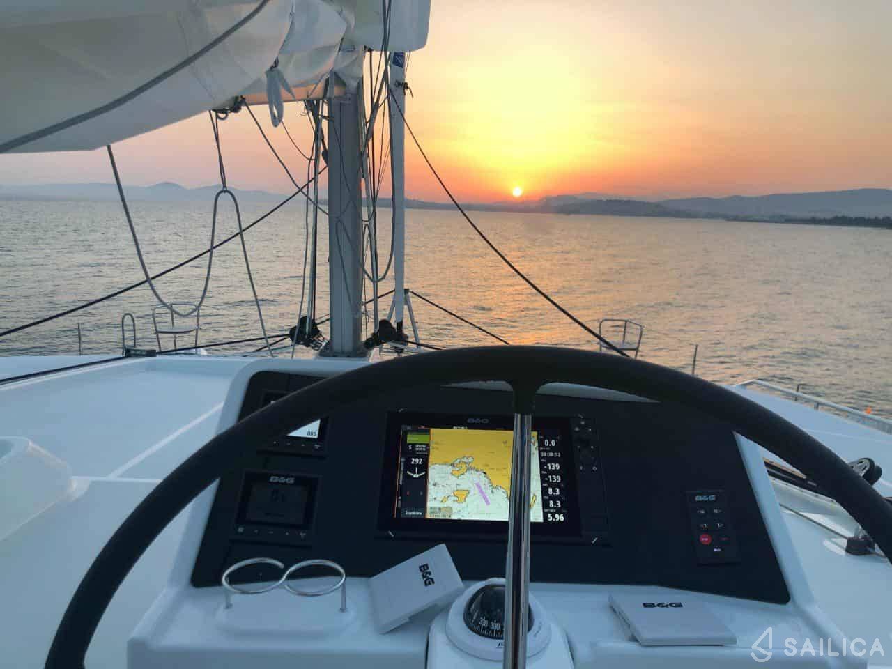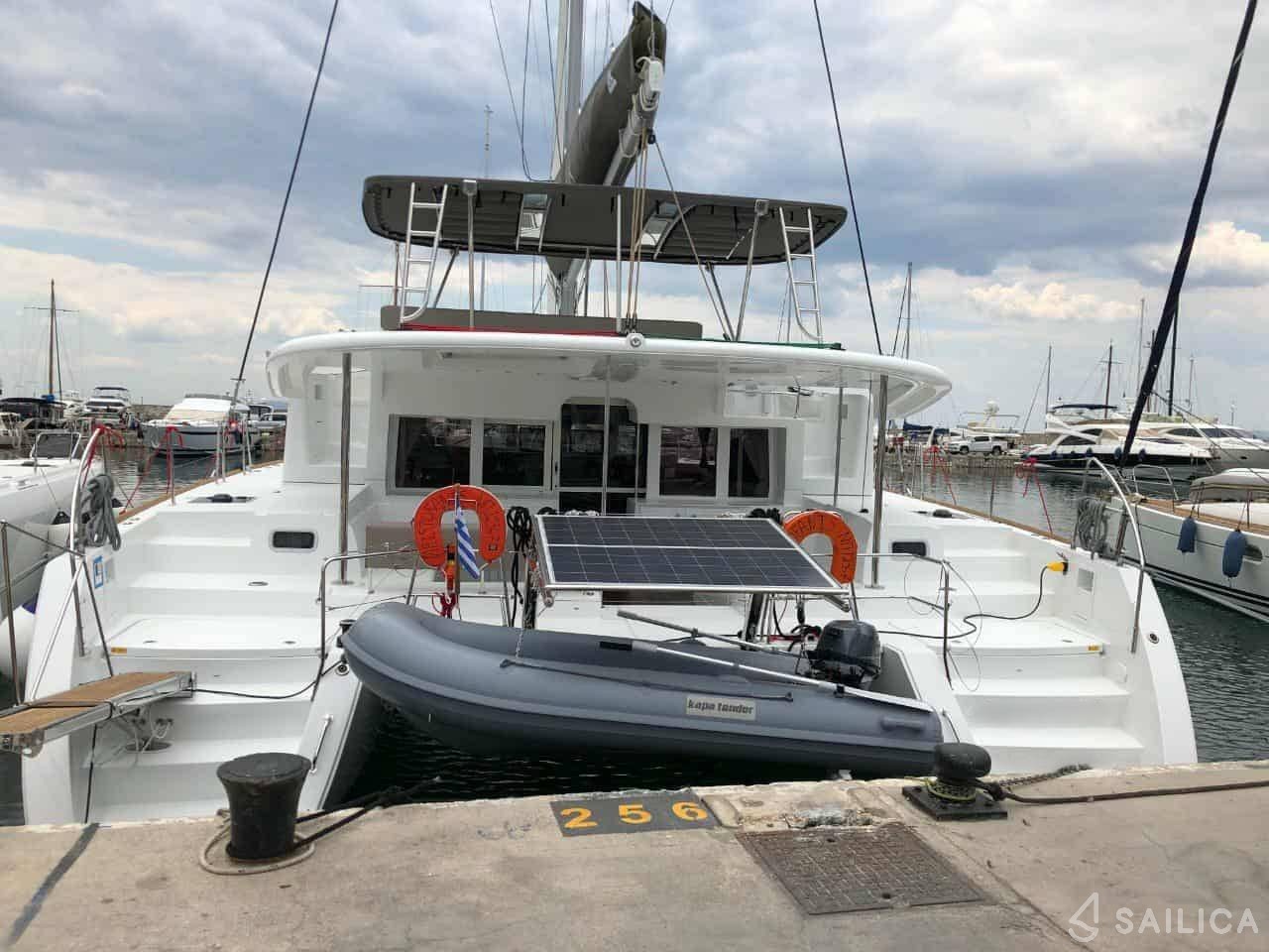 Catamaran Lagoon 450 Flybridge Lagoon 450F built 2019 Generator, A/C, Watermaker is docked in the beautiful Port of Lefkada Marina, and it is important to know that all rented vessels must be returned to the same location from which they were rented.
