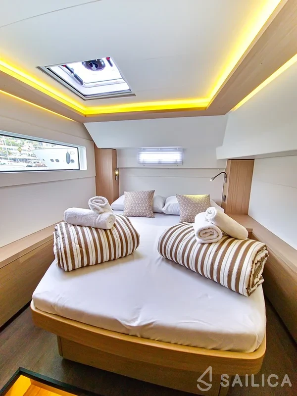 Lagoon 46 FELICITÀ Catamaran was produced in 2023, and is operated by the SunLife Charter charter company. This luxurious vessel can comfortably accommodate up to 12 people, it contains 6 cabins and 4 WC. For your convenience, Lagoon 46 FELICITÀ is equipped with an Lazy bag, Holding tank, Teak deck, Hot Water , Wind instrument and much more.