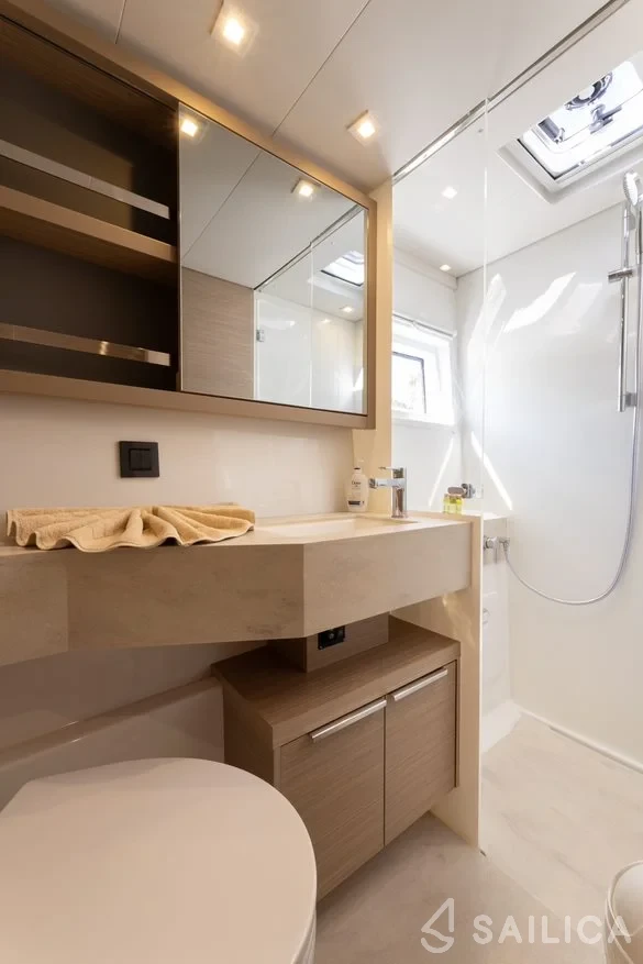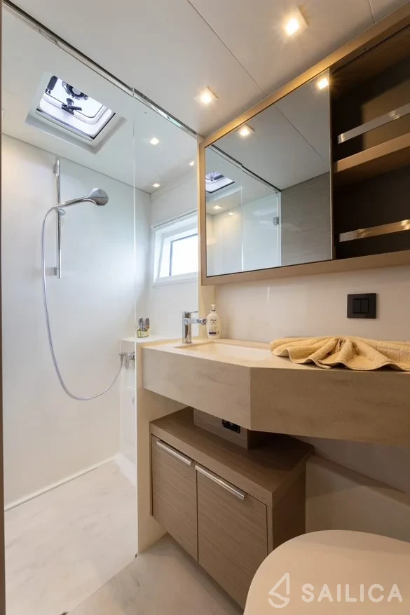 Lagoon 46 SKYFALL Catamaran was produced in 2023, and is operated by the Nautika Centar Nava charter company. This luxurious vessel can comfortably accommodate up to 12 people, it contains 6 cabins and 4 WC. For your convenience, Lagoon 46 SKYFALL is equipped with an Lazy bag, Deck Shower, GPS Chartplotter, Bed-linen, Gangway and much more.
