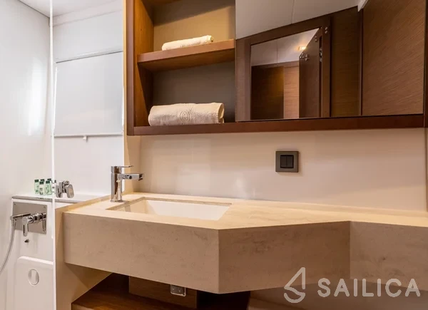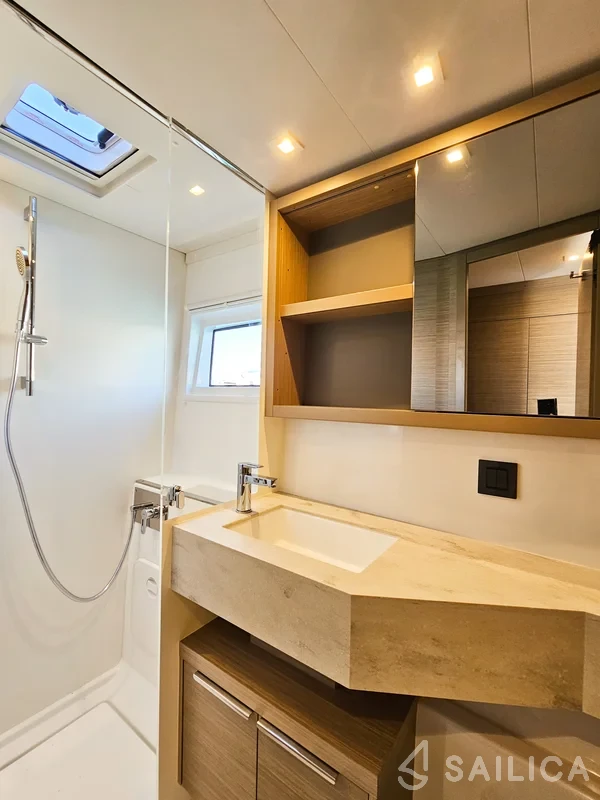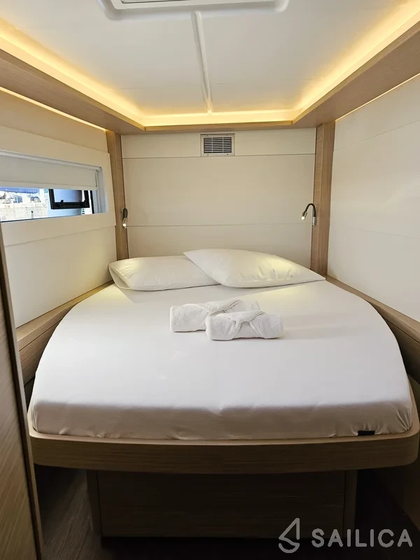 Lagoon 46 Galeb Catamaran was produced in 2023, and is operated by the Baotic Yachting charter company. This luxurious vessel can comfortably accommodate up to 8 people, it contains 4 cabins and 4 WC. For your convenience, Lagoon 46 Galeb is equipped with an Hot Water , Windlass, Stove, Deck Shower, GPS Chartplotter and much more.