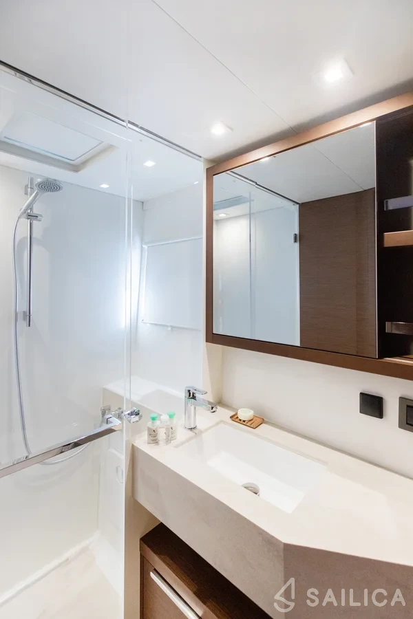 Lagoon 46 Lua Catamaran was produced in 2024, and is operated by the Rudder and Moor charter company. This luxurious vessel can comfortably accommodate up to 8 people, it contains 4 cabins and 4 WC. For your convenience, Lagoon 46 Lua is equipped with an Windlass, Stove, Electric WC, Air conditioner, Generator and much more.