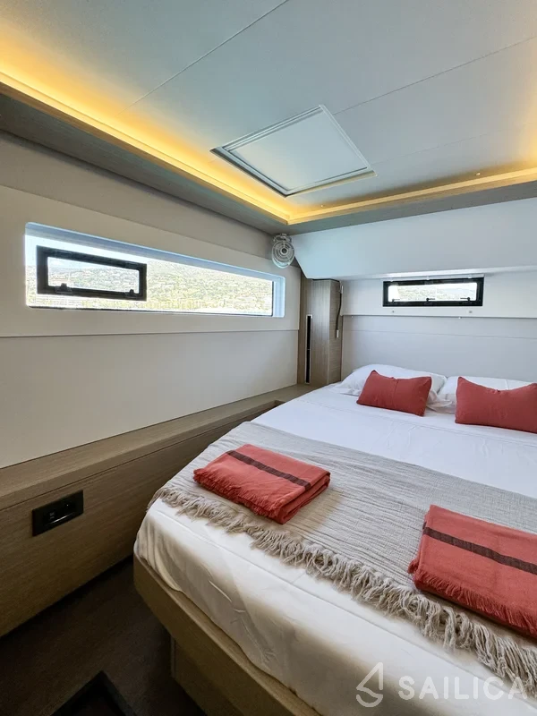 Lagoon 46 YOFF Catamaran was produced in 2024, and is operated by the Windward Islands Yachting & Travel charter company. This luxurious vessel can comfortably accommodate up to 8 people, it contains 4 cabins and 4 WC. For your convenience, Lagoon 46 YOFF is equipped with an 220V sockets, Air condition, Water maker, Wi-Fi, Swimming platform and much more.