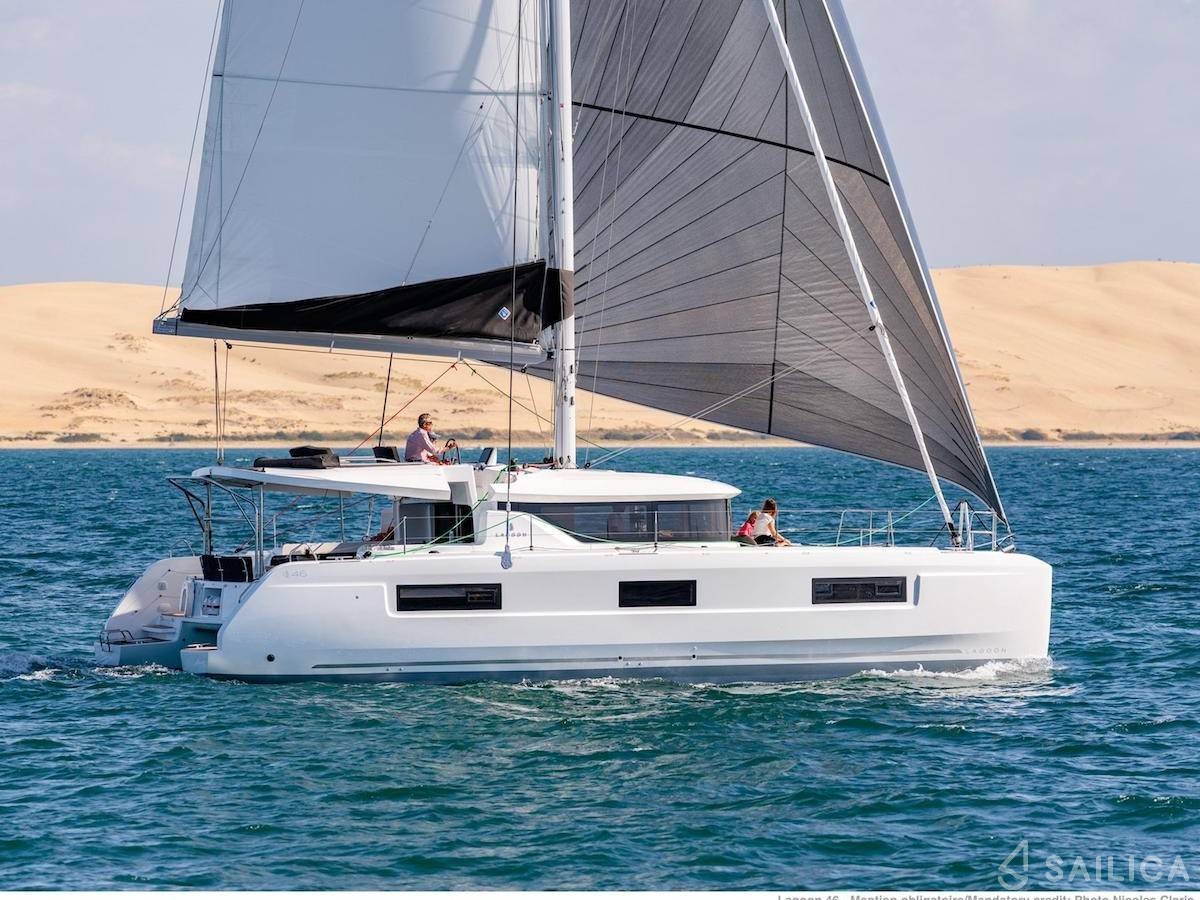 Lagoon 46 Waikiki Ocean Catamaran was produced in 2025, and is operated by the NSS Charter charter company. This luxurious vessel can comfortably accommodate up to 8 people, it contains 4 cabins and 4 WC. For your convenience, Lagoon 46 Waikiki Ocean is equipped with an Air condition, Electric toilet, Water maker, Coffee maker, Generator and much more.