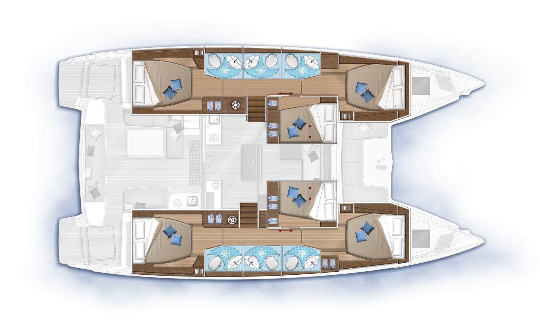Lagoon 50 ONEIDA 2 Catamaran was produced in 2022, and is operated by the Athenian Yachts charter company. This luxurious vessel can comfortably accommodate up to 12 people, it contains 6 cabins and 5 WC. For your convenience, Lagoon 50 ONEIDA 2 is equipped with an GPS, Furling Genoa, Microwave, Hot Water , Radar and much more.