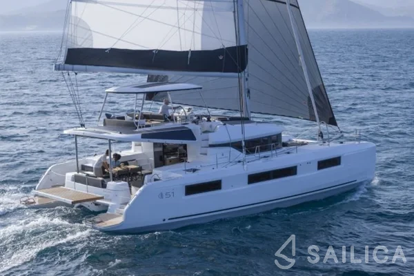 Lagoon 51 JEWEL Catamaran was produced in 2023, and is operated by the Vernicos Yachts charter company. This luxurious vessel can comfortably accommodate up to 16 people, it contains 8 cabins and 6 WC. For your convenience, Lagoon 51 JEWEL is equipped with an Full batten main sail, Furling Genoa, Lazy bag, Bathing platform, Teak Cockpit and much more.