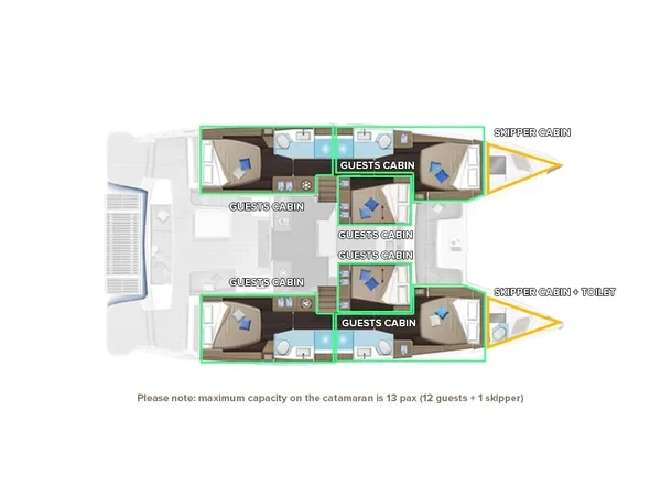 Lagoon 51 LAVINA Catamaran was produced in 2024, and is operated by the Adriatic Sailing charter company. This luxurious vessel can comfortably accommodate up to 12 people, it contains 6 cabins and 4 WC. For your convenience, Lagoon 51 LAVINA is equipped with an 220V sockets, Tridata, Wind instrument , Teak Cockpit, Windlass and much more.