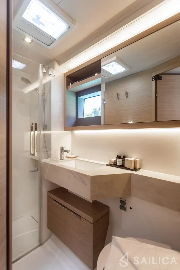 Lagoon 51 ARANEL Catamaran was produced in 2025, and is operated by the Vernicos Yachts charter company. This luxurious vessel can comfortably accommodate up to 16 people, it contains 8 cabins and 6 WC. For your convenience, Lagoon 51 ARANEL is equipped with an Bathing platform, Teak Cockpit, Hydraulic gangway, Coffee machine, Boarding ladder and much more.