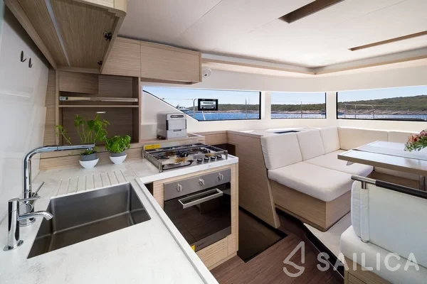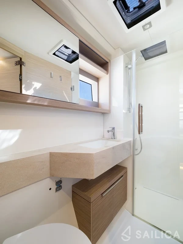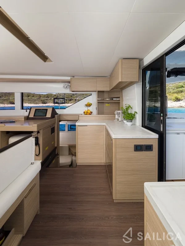 Lagoon 51 CATWALK Catamaran was produced in 2024, and is operated by the Ocean Sailing House charter company. This luxurious vessel can comfortably accommodate up to 10 people, it contains 5 cabins and 4 WC. For your convenience, Lagoon 51 CATWALK is equipped with an 220V sockets, Bathing platform, Teak deck, Tridata, Microwave and much more.