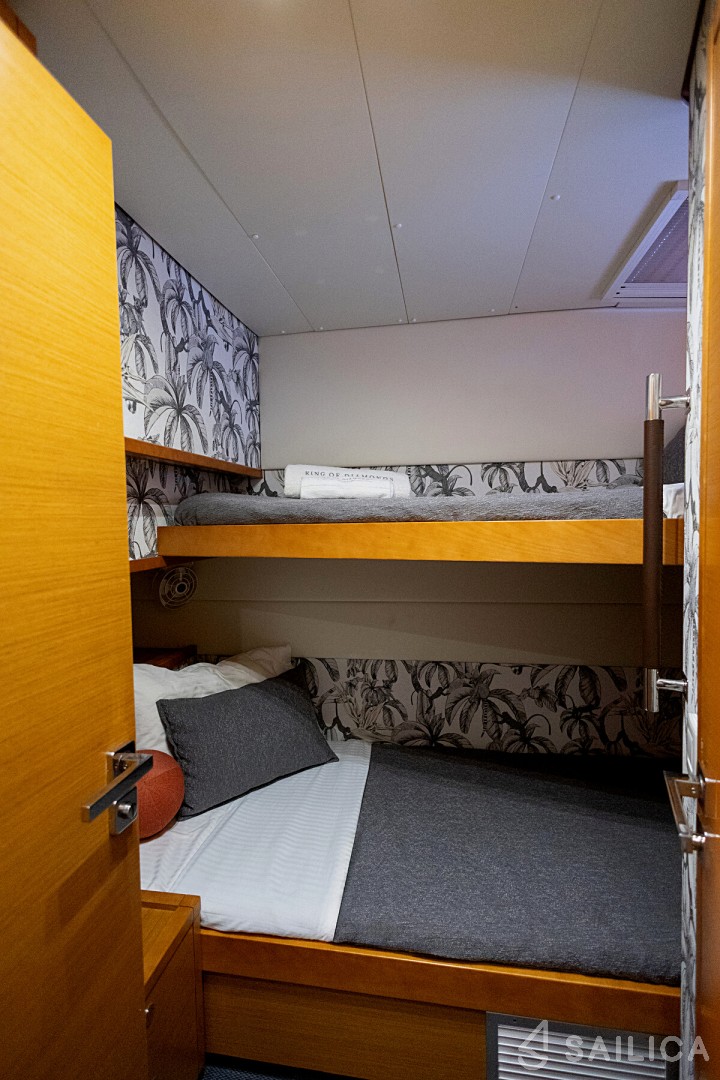 Lagoon 560 KING OF DIAMONDS Catamaran was produced in 2016, and is operated by the Vernicos Crewed charter company. This luxurious vessel can comfortably accommodate up to 8 people, it contains 4 cabins and 4 WC. For your convenience, Lagoon 560 KING OF DIAMONDS is equipped with an Chart Plotter, Air condition, Wi-Fi Internet, Generator, Snorkeling equipment and much more.