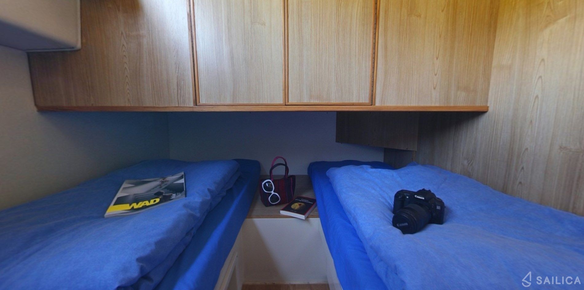 This yacht can comfortably accommodate up to 4 guests, it contains 2 cabins, and 2 WC (toilet).