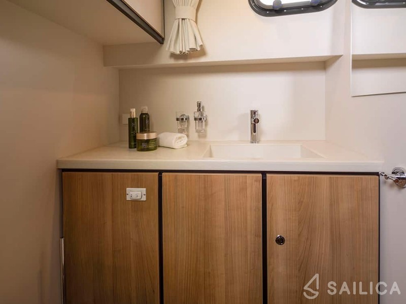 This yacht can comfortably accommodate up to 4 guests, it contains 2 cabins, and 2 WC (toilet).