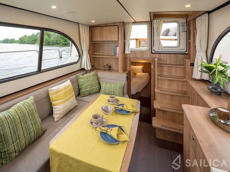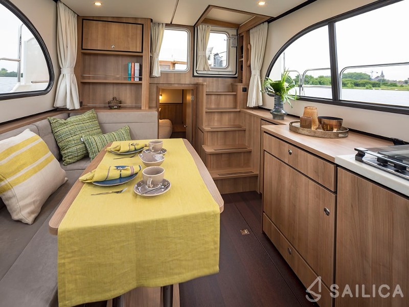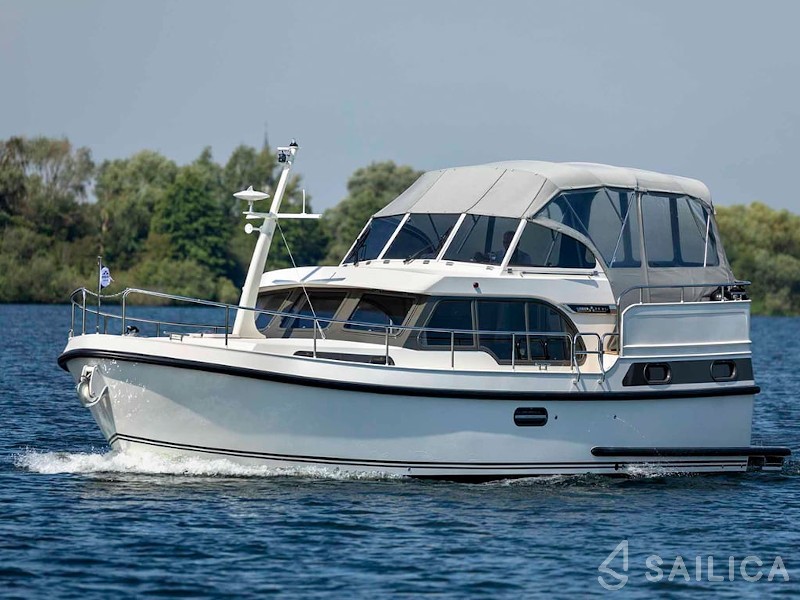 Linssen 35 SL Speyside is a beautiful houseboat built in 2021. This houseboat is operated by the Blue Wave Yachting by Delos charter company and docked at Noord IJsseldijk Marina.