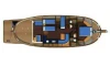 Menorquin 160 Buccara XVI has 3 cabins and can comfortably accommodate 6 people. It is conveniently equipped with 2 toilet (latrine),a Microwave, Dishwasher, GPS Chartplotter, Coffee machine, and Boarding ladder.