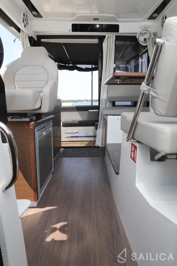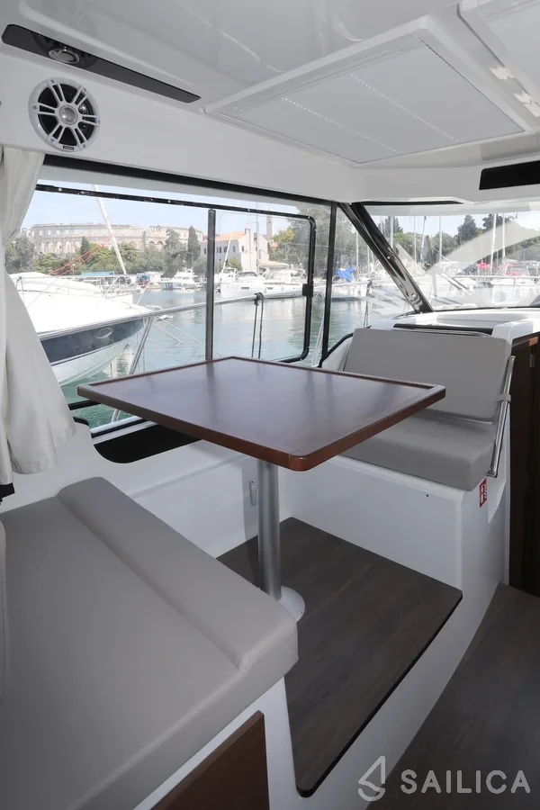 Merry Fisher 895 Ema has 2 cabins and can comfortably accommodate 4 people. It is conveniently equipped with 1 toilet (latrine),a Holding tank, Hot Water , Deck Shower, GPS Chartplotter, and First aid kit.
