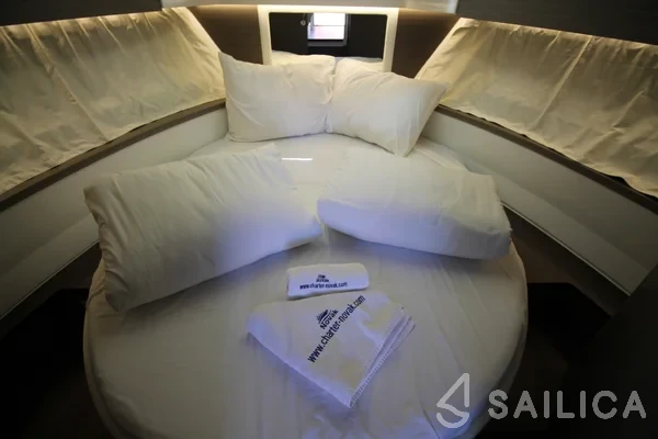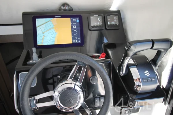 Merry Fisher 895 Navis Amoris has 2 cabins and can comfortably accommodate 4 people. It is conveniently equipped with 1 toilet (latrine),a Hot Water , Windlass, Deck Shower, Coffee machine, and Electric WC.