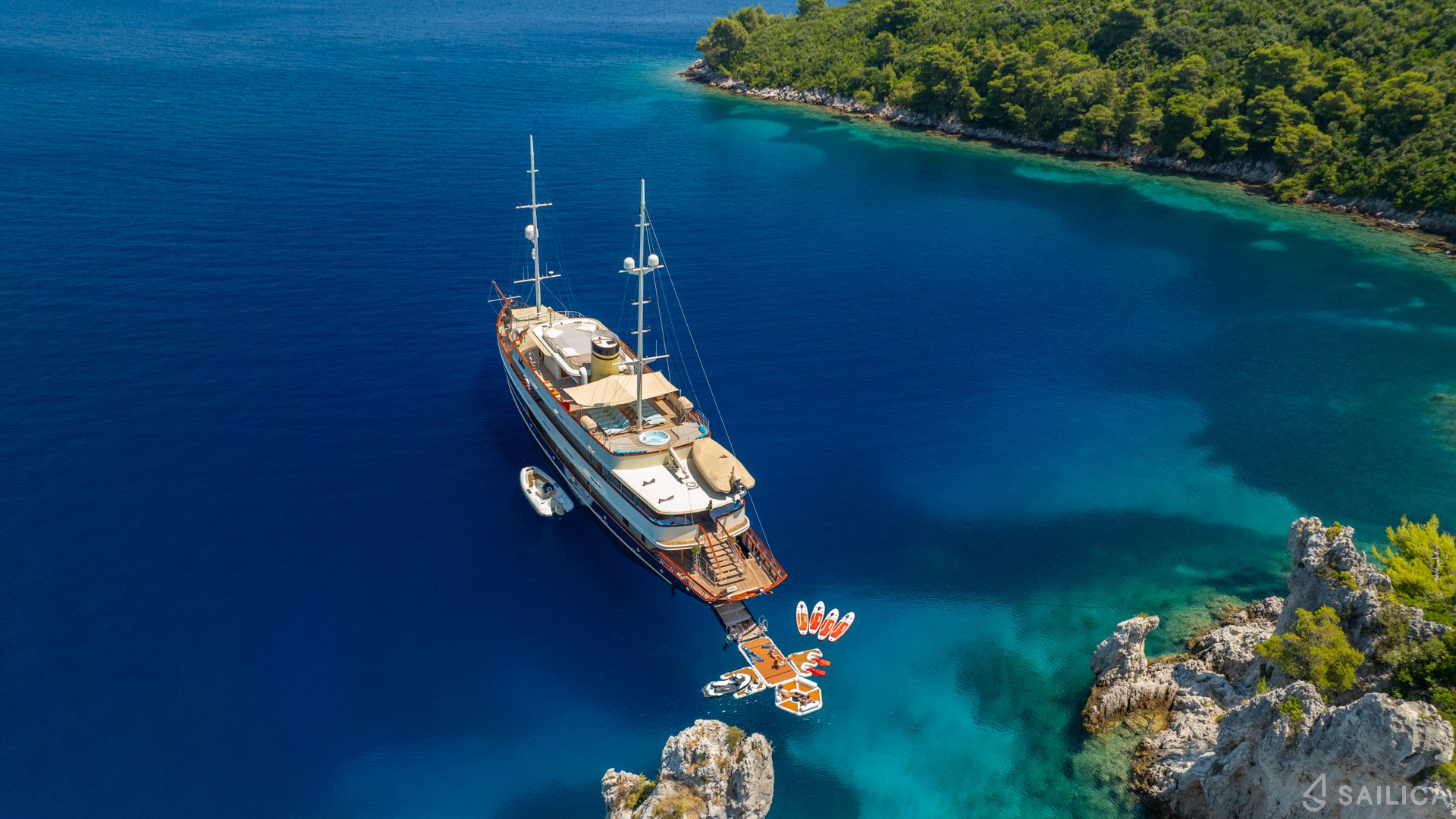 Motoryacht Casablanca has 18 cabins and can comfortably accommodate 36 people. It is conveniently equipped with 18 toilet (latrine),a Air condition, Wi-Fi Internet, Dinghy, TV, and Stand up paddle.
