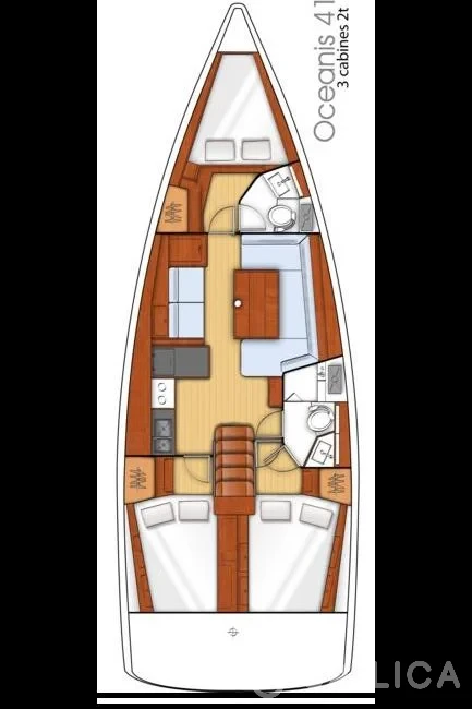 This yacht can comfortably accommodate up to 6 guests, it contains 3 cabins, and 2 WC (toilet).