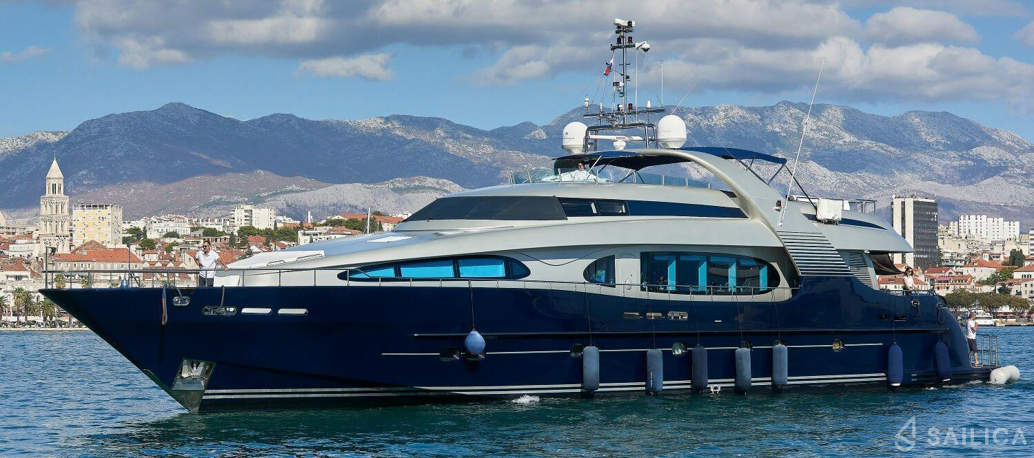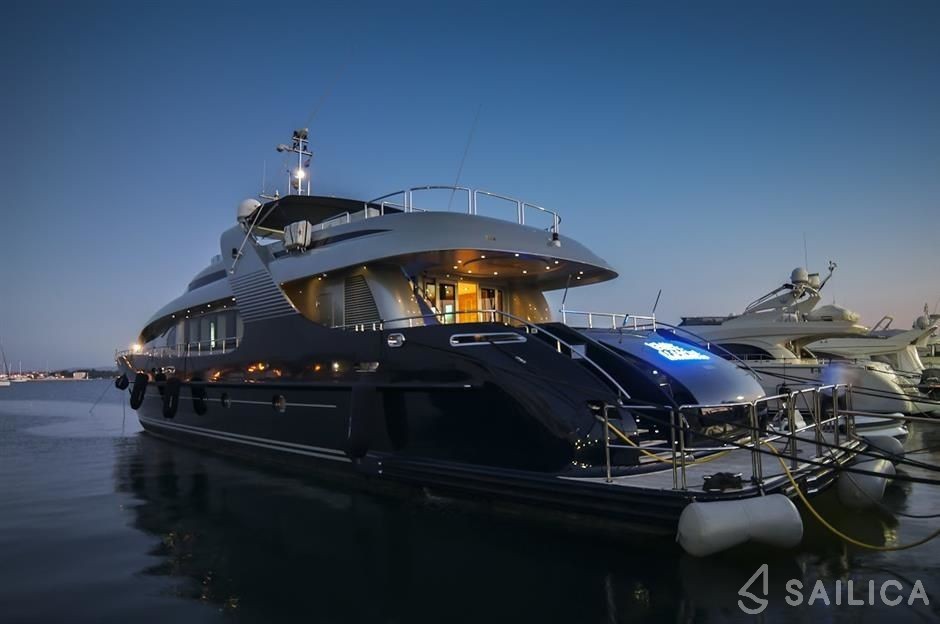 Oceanline 127 One Blue was manufactured in 2009. This beautiful Motor yacht is operated by the Boatsters charter company and docked at Marina Frapa.