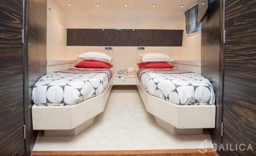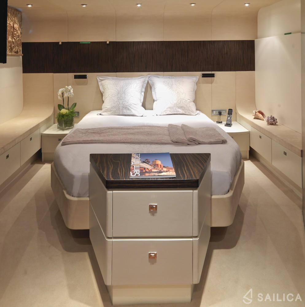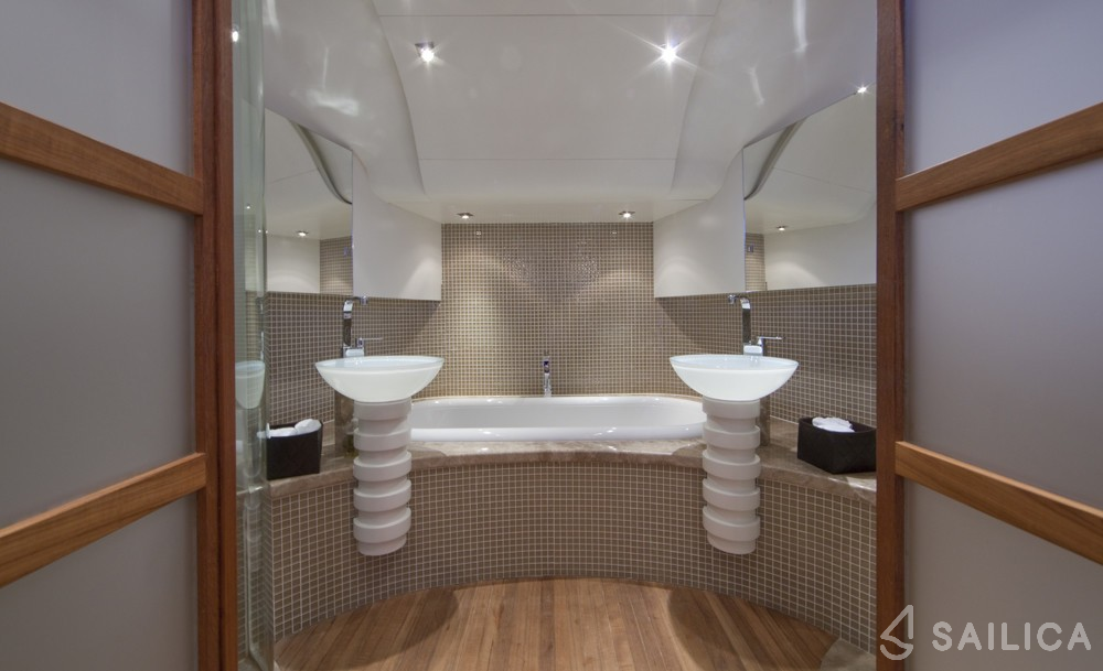 Oceanline 127 One Blue has 6 cabins and can comfortably accommodate 12 people. It is conveniently equipped with 6 toilet (latrine),a Bathing platform, Sink, Teak deck, Radar , and Oven.