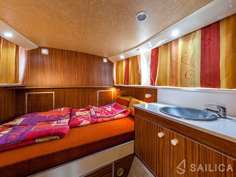 This yacht can comfortably accommodate up to 6 guests, it contains 3 cabins, and 1 WC (toilet).