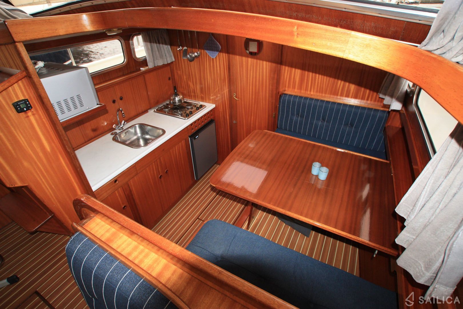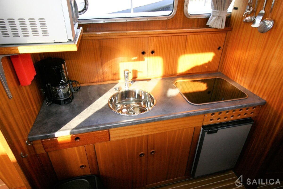 Pikmeer 1100 Minerva has 2 cabins and can comfortably accommodate 4 people. It is conveniently equipped with 1 toilet (latrine),a Bathing platform, Sink, Microwave, Coffee machine, and Flat screen TV.