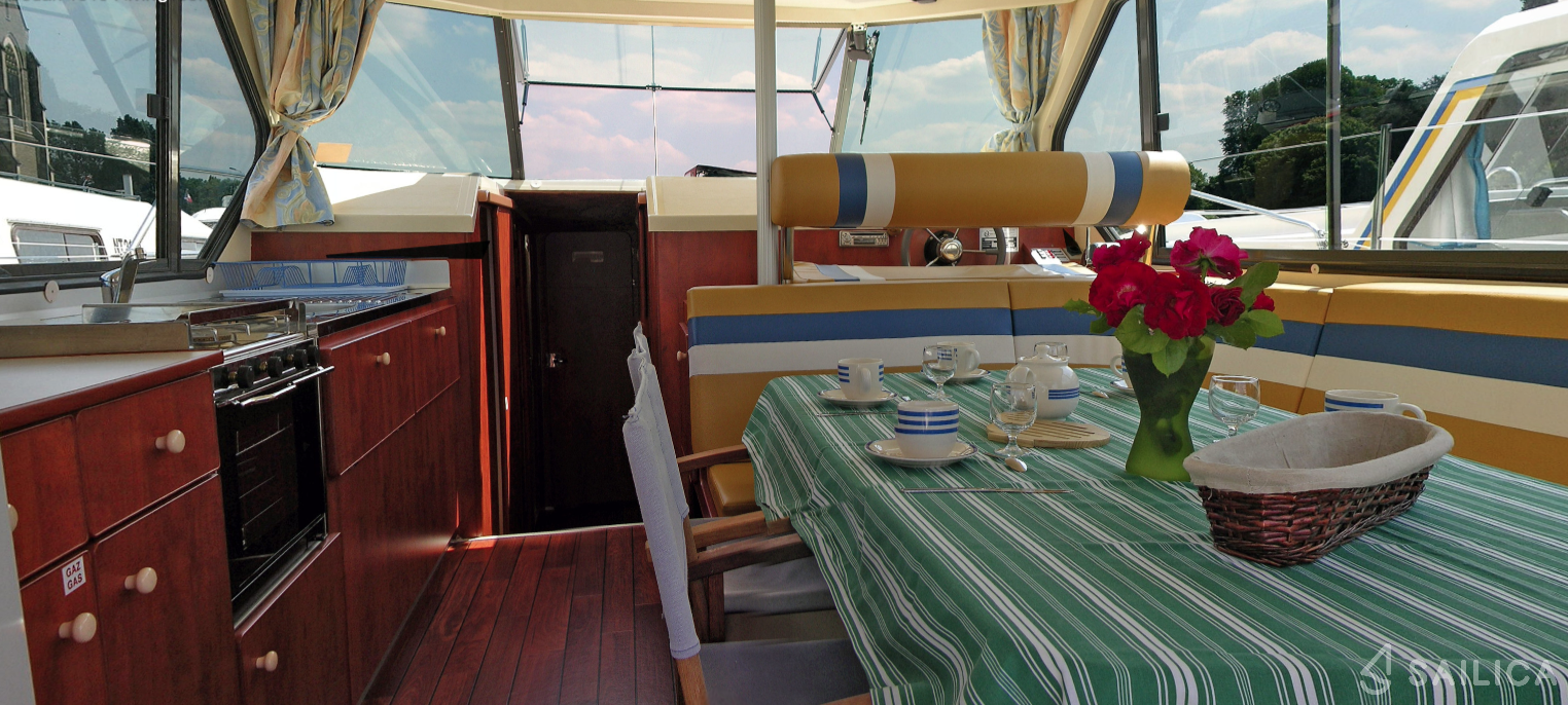 Sedan 1170 Crescendo is a beautiful houseboat built in 2000. This houseboat is operated by the Nicols charter company and docked at Marina Grez-Neuville.