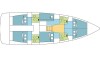 This yacht can comfortably accommodate up to 14 guests, it contains 7 cabins, and 5 WC (toilet).