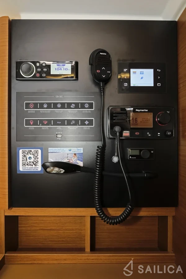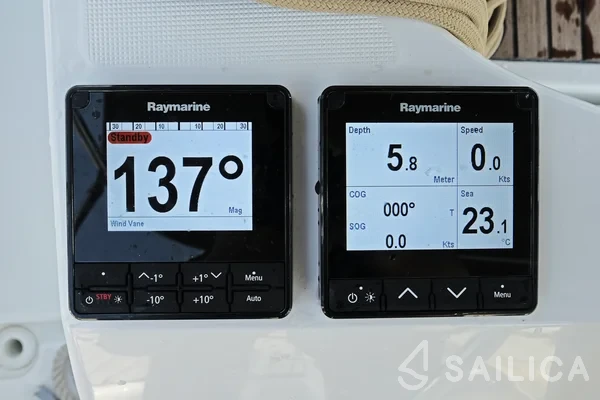 For your convenience, this boat features an Tridata, Wind instrument , Windex, Deck Shower, GPS Chartplotter.