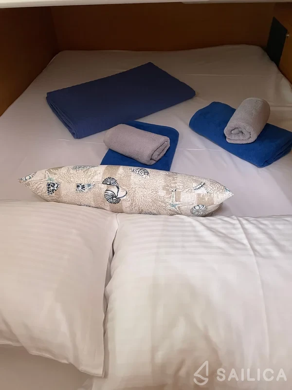 This yacht can comfortably accommodate up to 10 guests, it contains 5 cabins, and 3 WC (toilet).