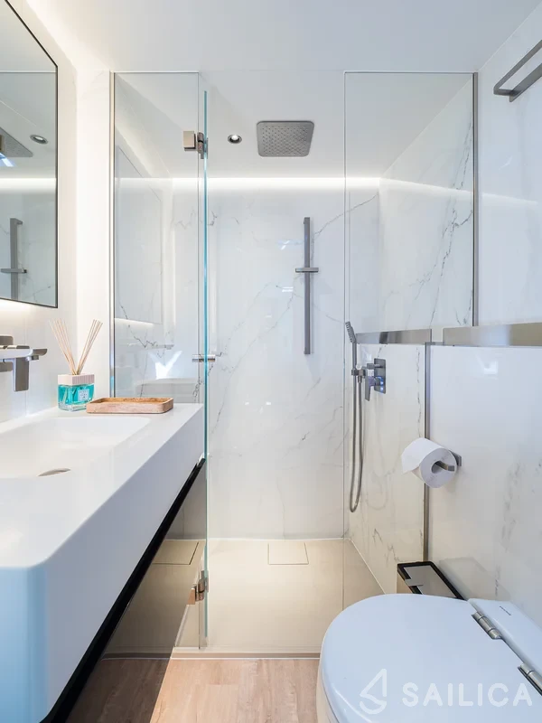 Sunreef 70 n + 1 Catamaran was produced in 2024, and is operated by the Ocean Sailing House charter company. This luxurious vessel can comfortably accommodate up to 10 people, it contains 5 cabins and 5 WC. For your convenience, Sunreef 70 n + 1 is equipped with an Microwave, Hot Water , Windlass, Dishwasher, GPS Chartplotter and much more.